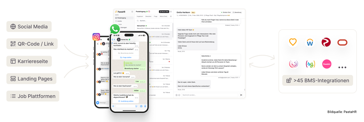 Ein Beispiel aus der Praxis: Das Spital Emmental nutzt WhatsApp-Bewerbungen via PastaHR erfolgreich, um Pflegepersonal zu rekrutieren – niederschwellig, effizient und zielgruppenorientiert.